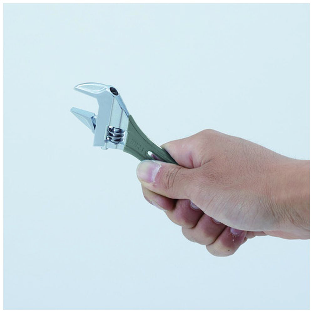 ■通常よりワンサイズ上のボルト・ナットに対応できるワイドな口開きです。