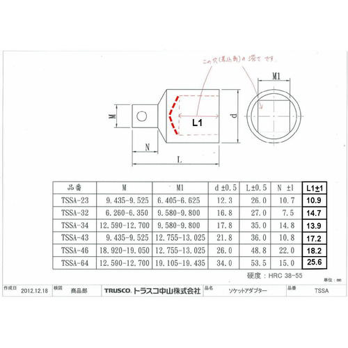 ソケットアダプター 差込角凹12.7mm 凸19.0mm TSSA46