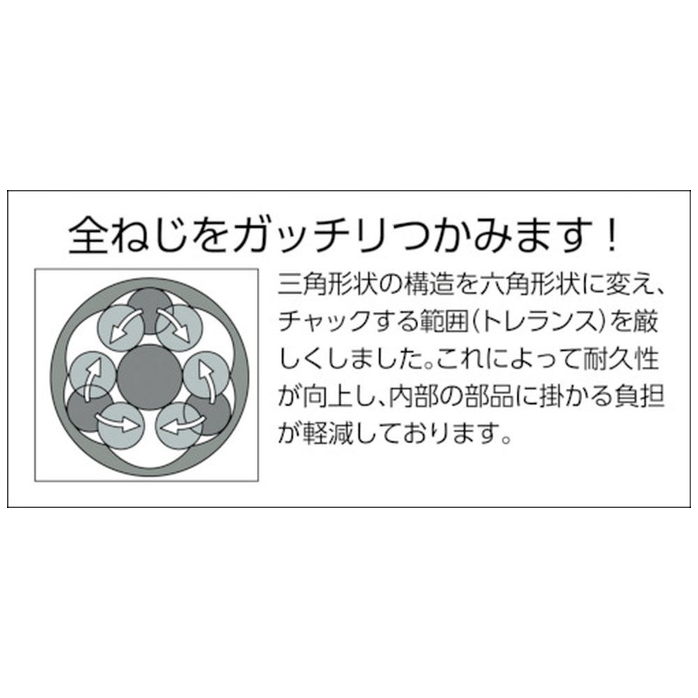 ■三角形状の構造を六角形状に変え、チャックする範囲(トレランス)を厳しくしました。これによって耐久性が向上し、内部の部品に掛かる負担が軽減しています。