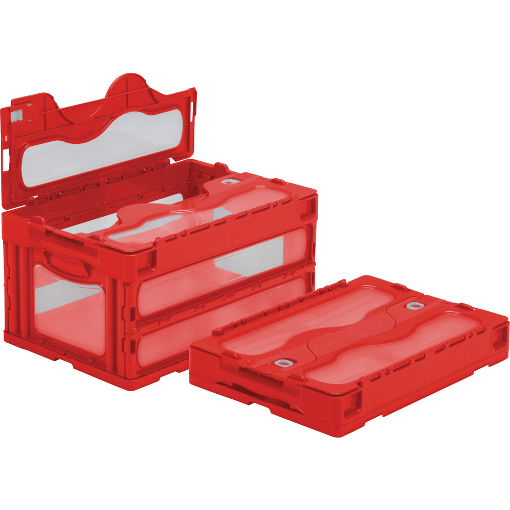 フタ一体型折りたたみコンテナー マドコン 41.5L スライドロック付 レッド SKO-C-40B-RE