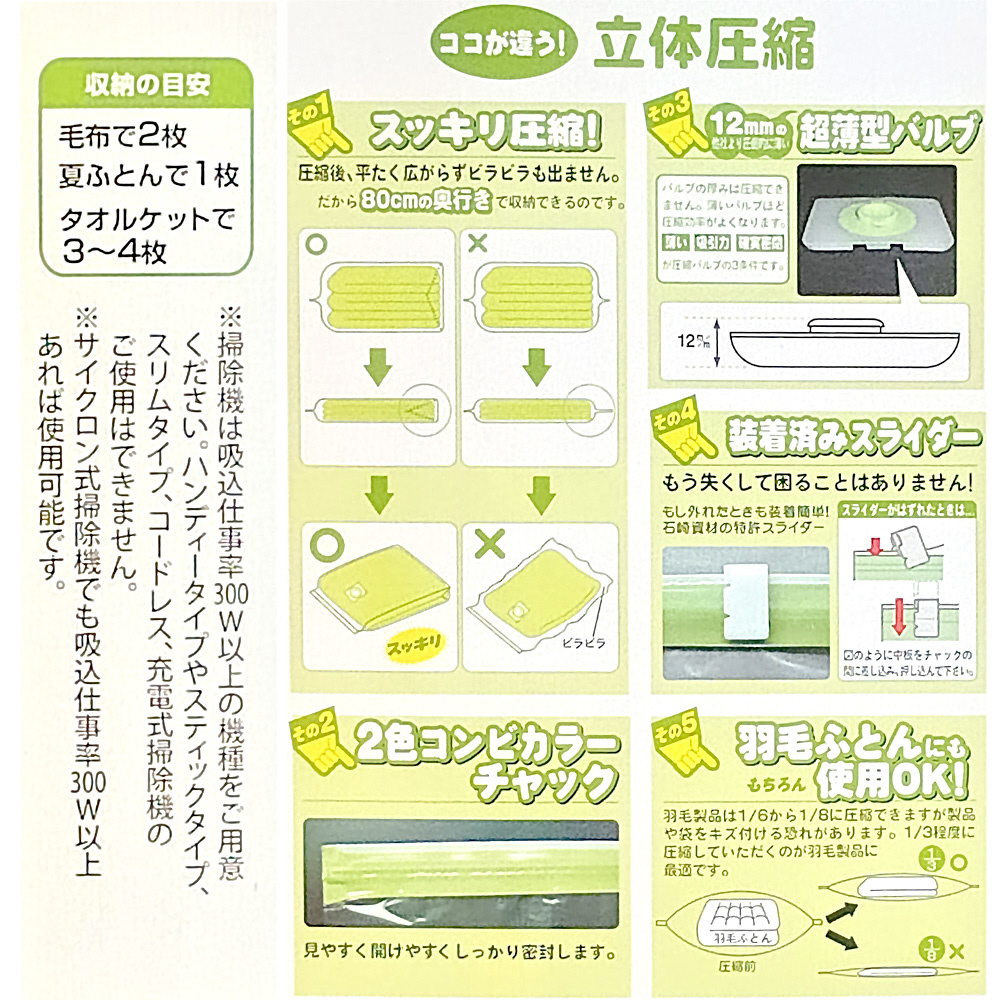 「立体圧縮」シリーズの布団圧縮袋はマチがついており、