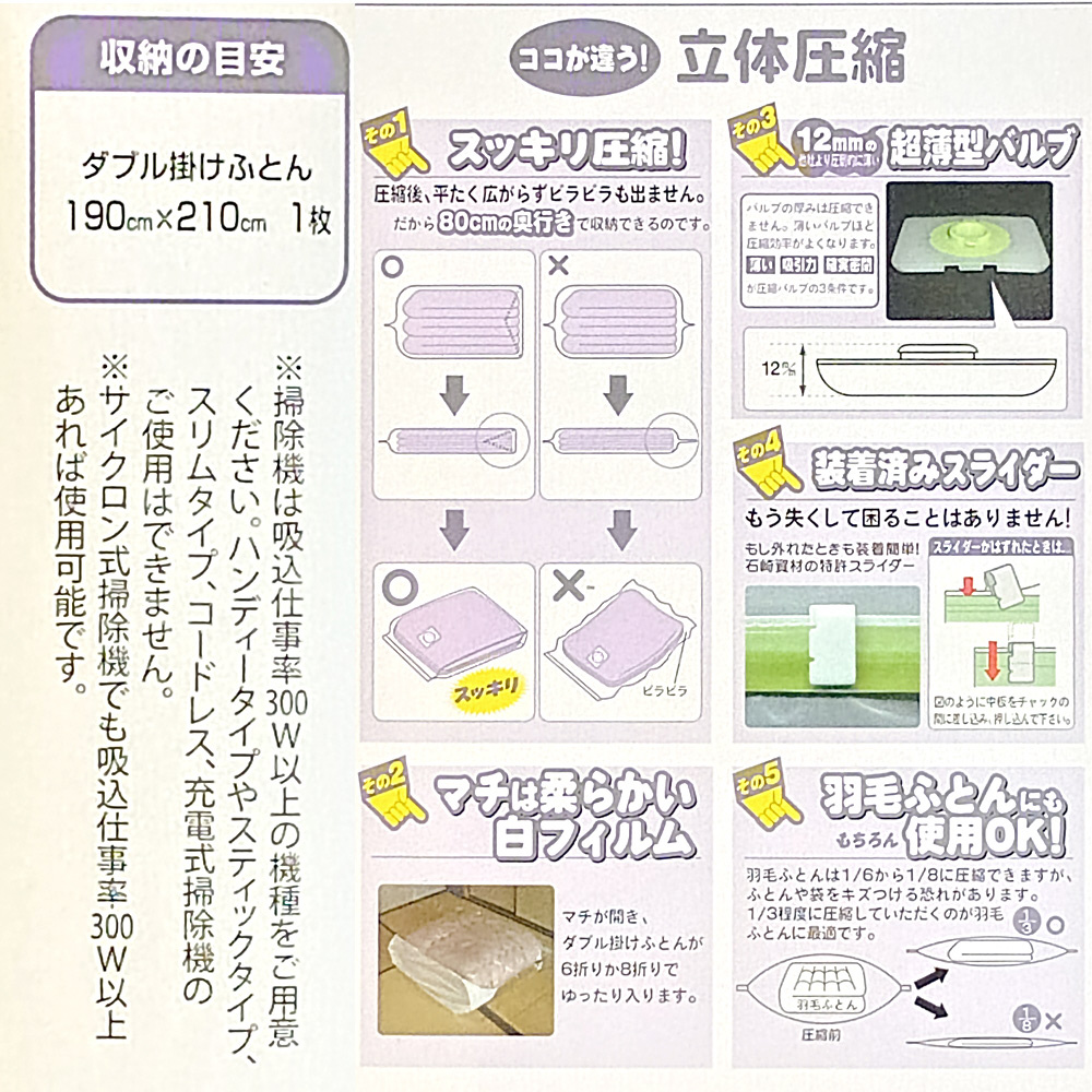 「立体圧縮」シリーズの布団圧縮袋はマチがついており、