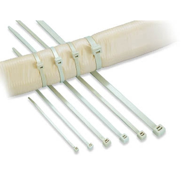 白い外壁やエアコンホースの色に馴染みやすい色の耐候・耐熱性インシュロックタイです。