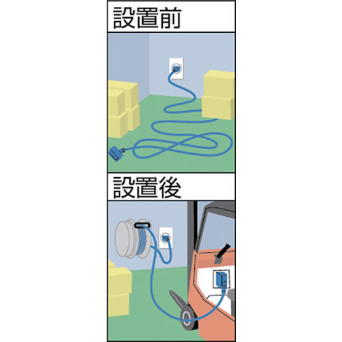 バッテリー式フォークリフトや無人自走台車の充電に最適なケーブルリールです。
