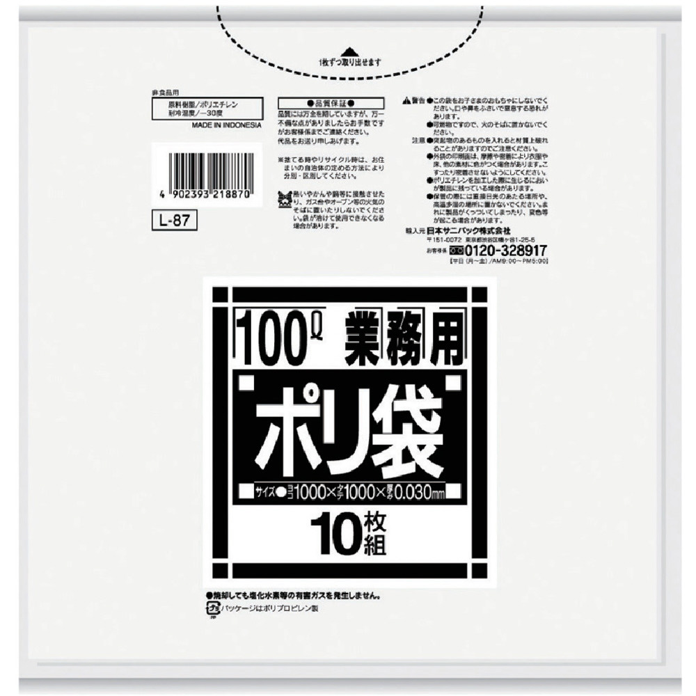 業務用ポリ袋 Lシリーズ L87 [100L /10枚 /透明]