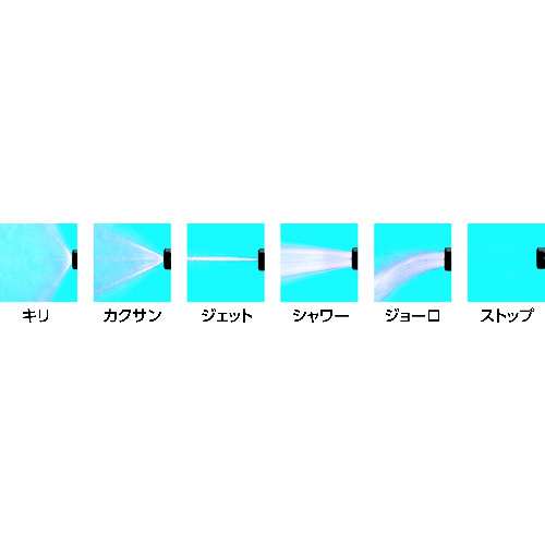 ■耐圧糸入りホースと水流が6パターン(キリ・ジェット・シャワー・ジョーロ・カクサン・ストップ)に切り替えられる水量調整アクアガンが付いたフルセットです。