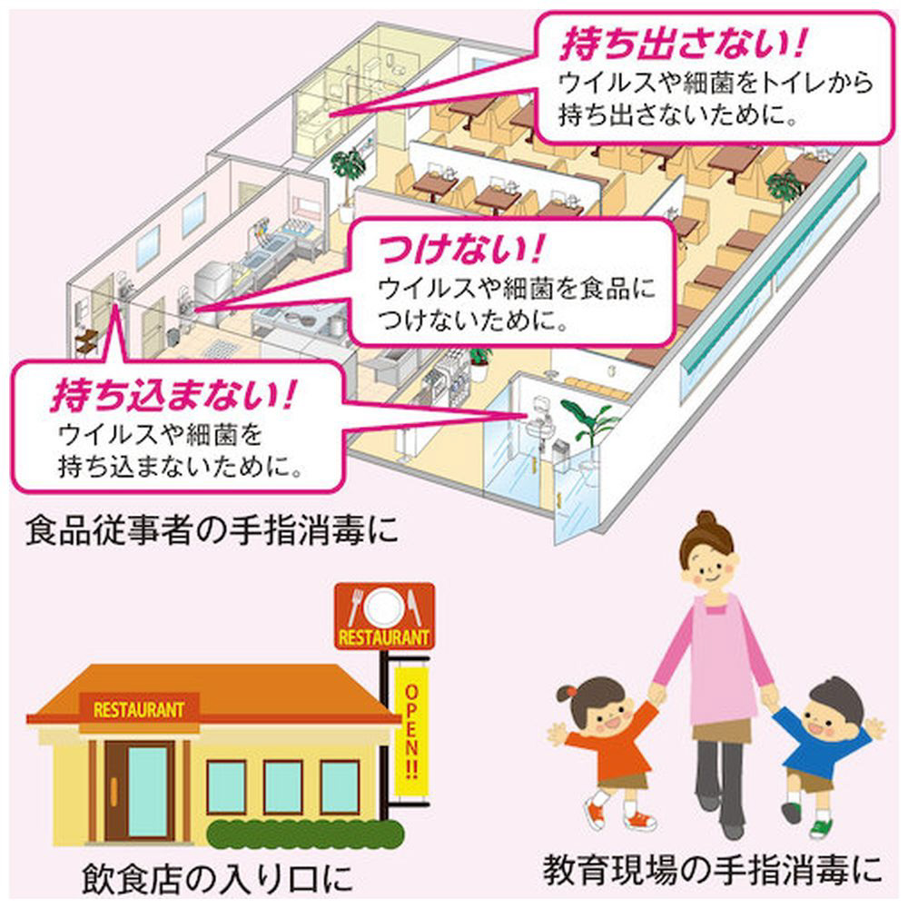 食品添加物にも使用されている成分を配合した手指消毒剤です。