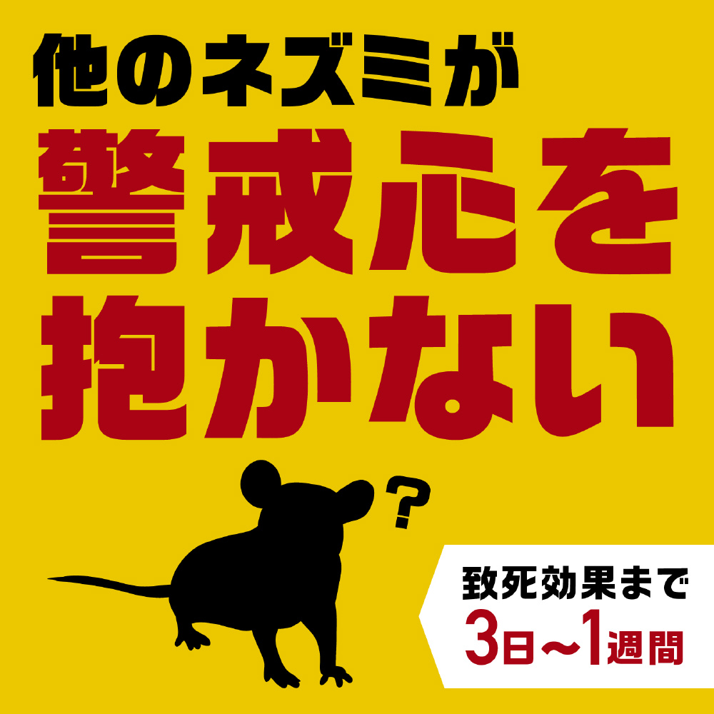 ・本品は遅効性で数日かけて徐々に効くので、他のネズミに警戒心を抱かせません。