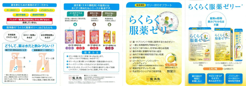 高齢者や嚥下困難者の服薬補助のために開発された、喉越しのよいレモン味のゼリー状オブラートです。もちろん健常者の方で、お薬を飲むのが苦手な方にもお使いいただけます。