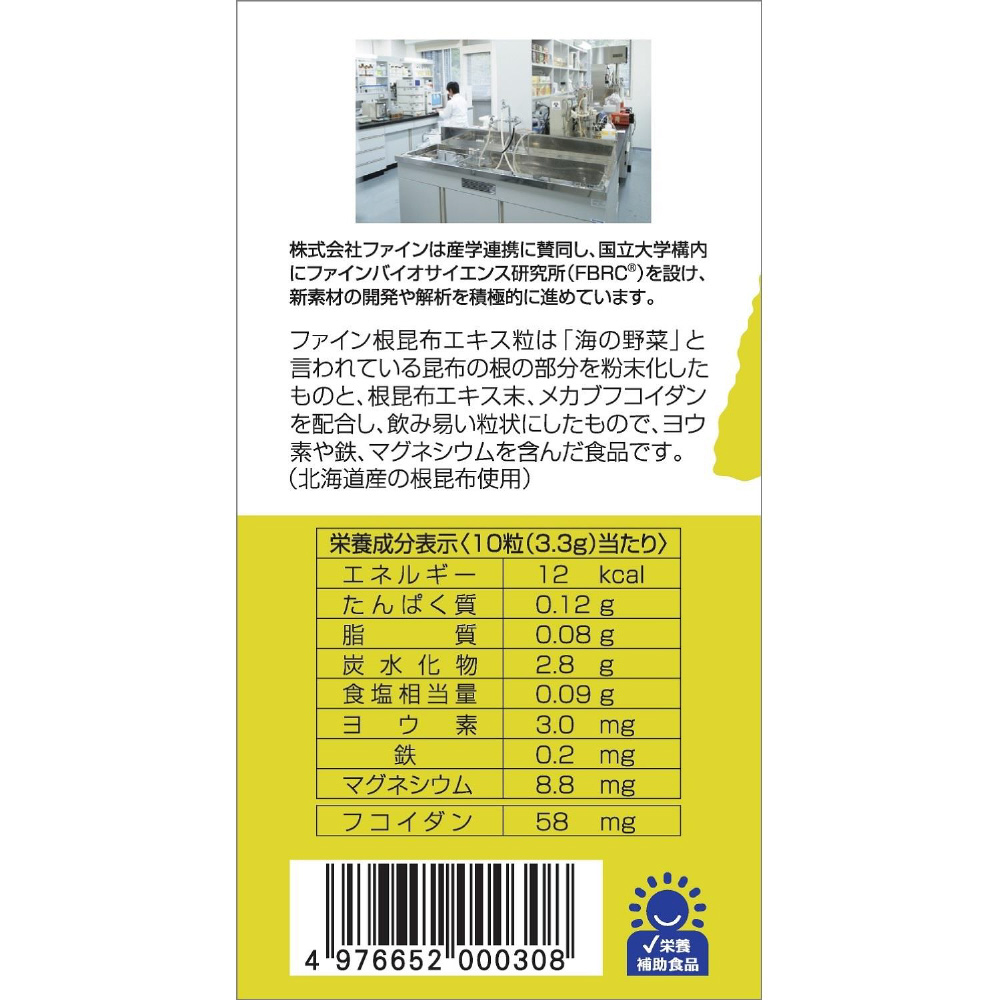 本品は昆布の根の部分を粉末化したものと、根昆布エキスにメカブフコイダンを配合し飲みやすい粒状にしたものです。