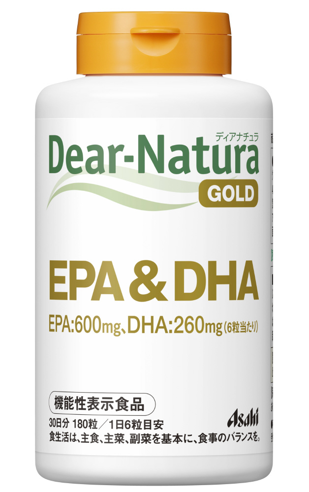 「ディアナチュラゴールド EPA&DHA 30日分 180粒」は、1日目安量6粒あたりEPAを600mg、DHAを260mg含有した機能性表示食品です。中性脂肪が高めの方におすすめです。香料、着色料、保存料無添加。15日分。機能性表示食品(消費者庁届出番号 A39)