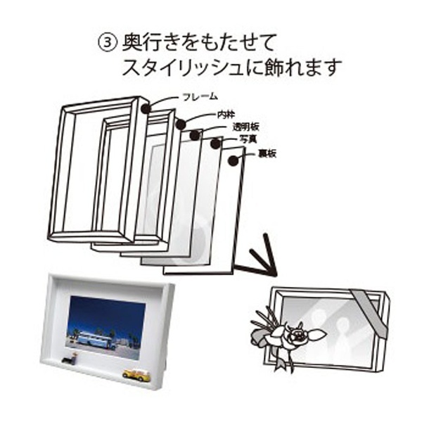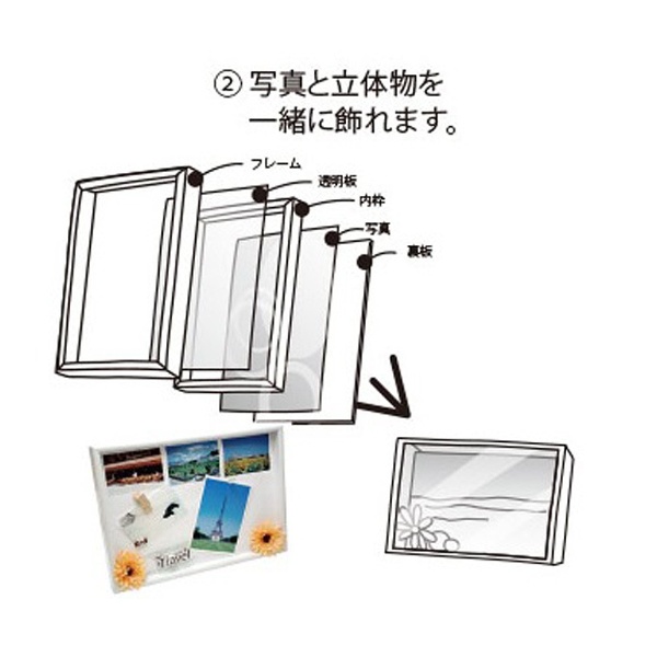 2.写真と立体物を一緒に飾れます。
