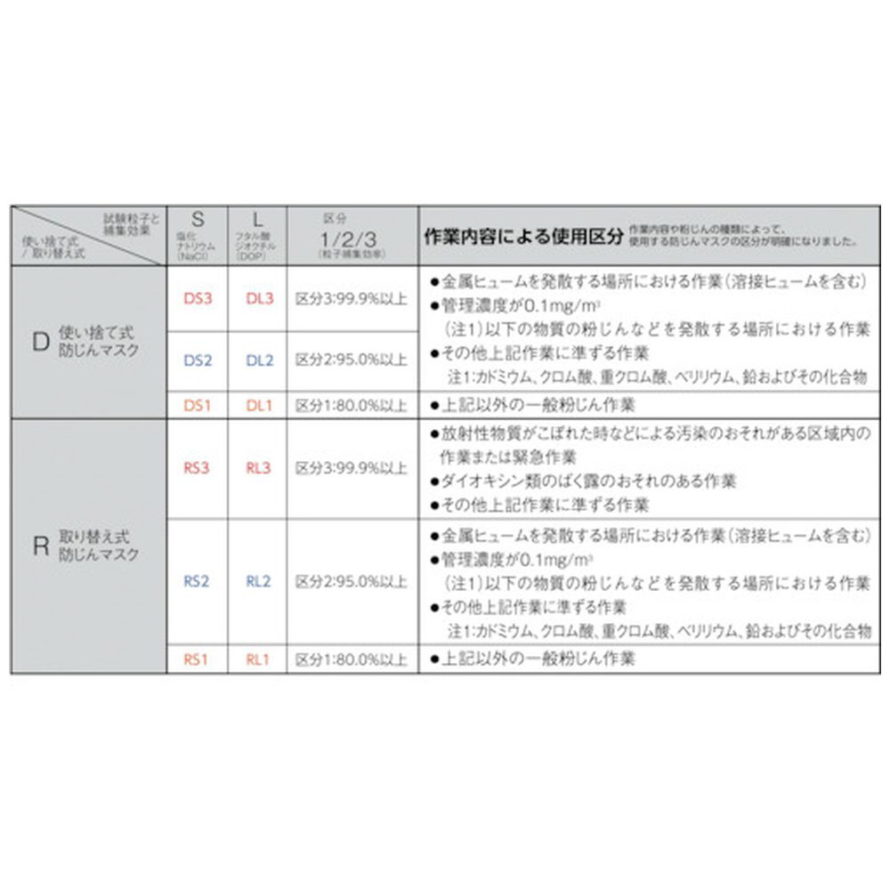 吸入口を左右に配置したデュアルフィルタータイプで、吸気抵抗が低く抑えられ、長時間・高濃度の粉じん作業でも呼吸が楽な取替式防じんマスクです。