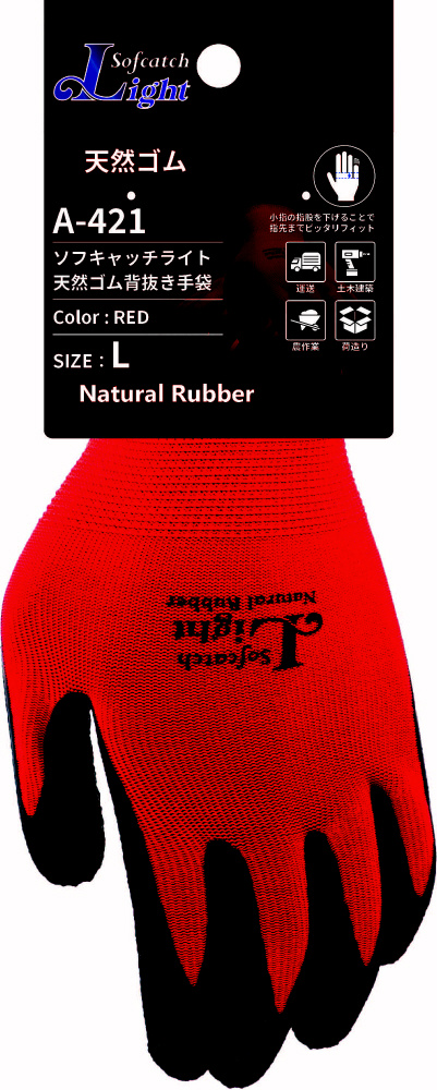 13G天然ゴム背抜き手袋 L レッド A-371