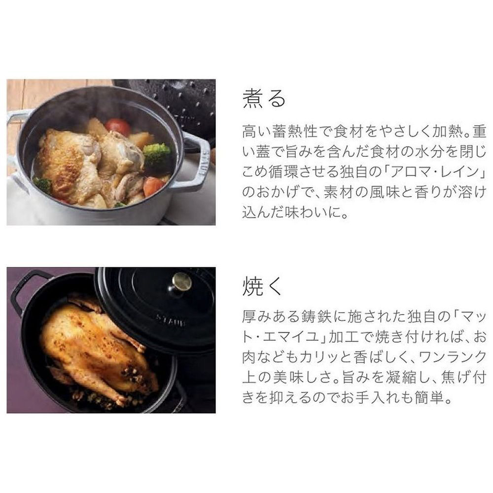 ストウブ独自の「セルフ・ベイスティング・システム」で本物の味を。(staub生涯保証付き正規品)
