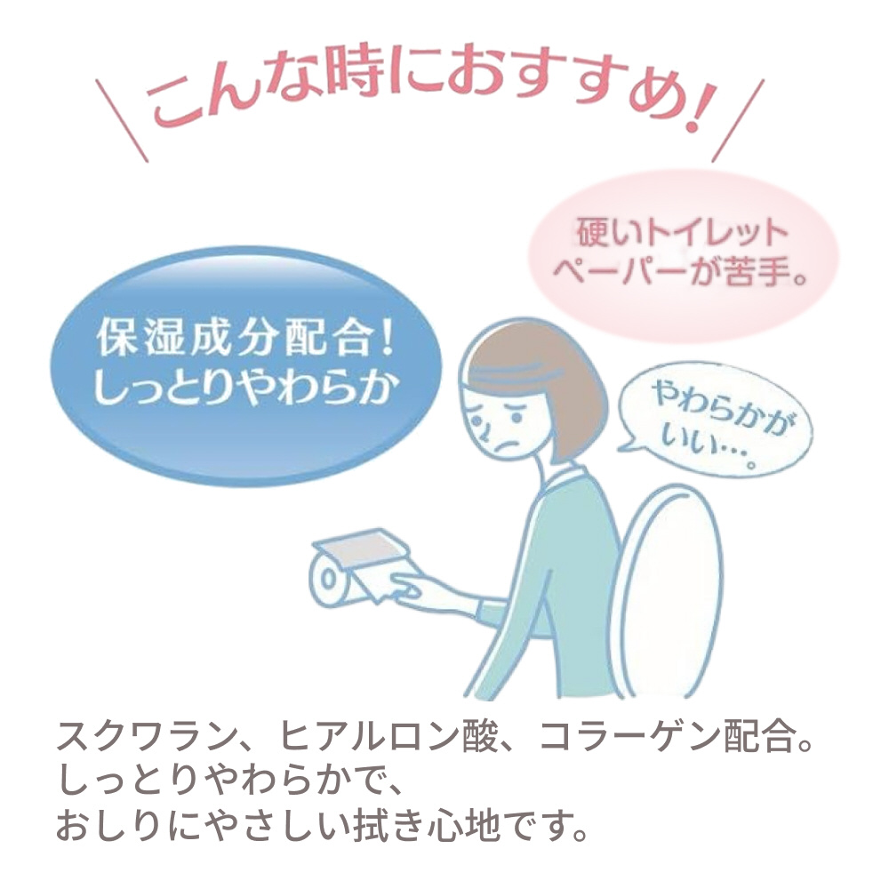 トイレに流せる、ウエットタイプのトイレットペーパーです。シャワー付きトイレがなくても、おしりすっきり。