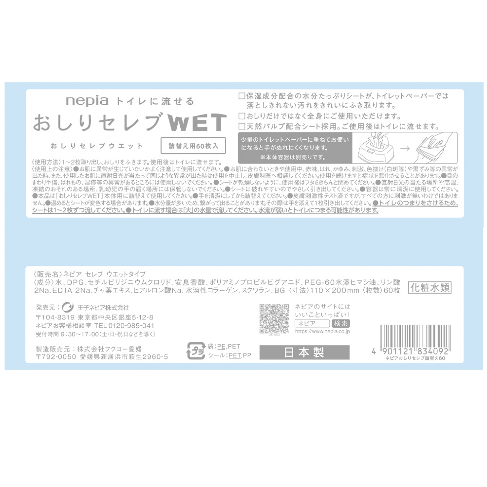 ネピア(nepia)おしりセレブ WET つめかえ用 無香料 60枚入り トイレに流せる おしりふき [ウェットティッシュ] ネピアおしりセレブ