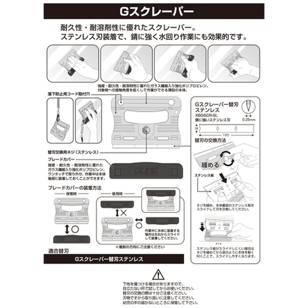 ■ステンレス刃を装着した水回り作業にも使えるスクレーパーです。