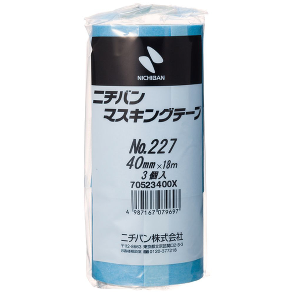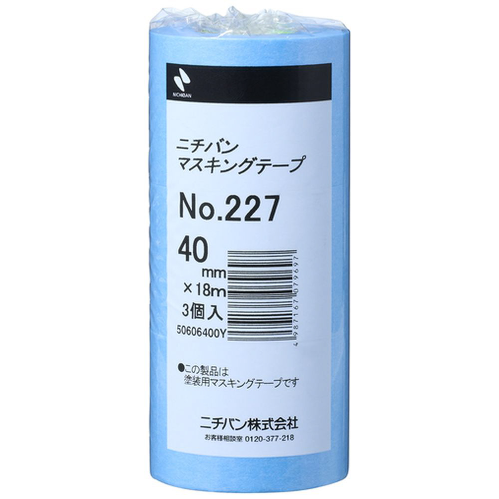 マスキングテープ NO227H 3巻入(幅40mm/長さ18m) ブルー 227H40