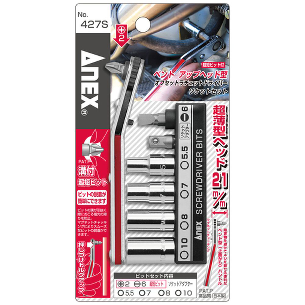 アネックス ベントアップヘッド型オフセットラチェットドライバー ソケットセット 427S