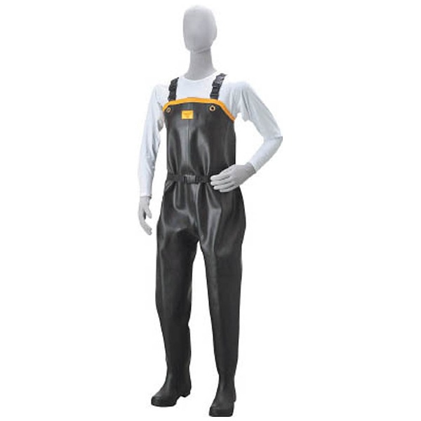 仕様 ■寸法(cm):25.5 ■足幅サイズ:EE ■総丈(cm):132 ■股下(cm):79 ■色:ブラック ■足幅サイズ:EE ■標準重量(kg):3.5(26.0cm) ■標準脇丈:132.0cm ■標準脇下:79.0cm ■色:ブラック ■胸下より靴の一体成型品 ■【材質/仕上げ】 胴部・底部:天然ゴム配合 ■原産国:日本 ■質量:3.45KG