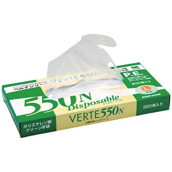 ポリエチレン使い捨て手袋 エンボスなし Mサイズ 200枚 半透明 VERTE-550N-M