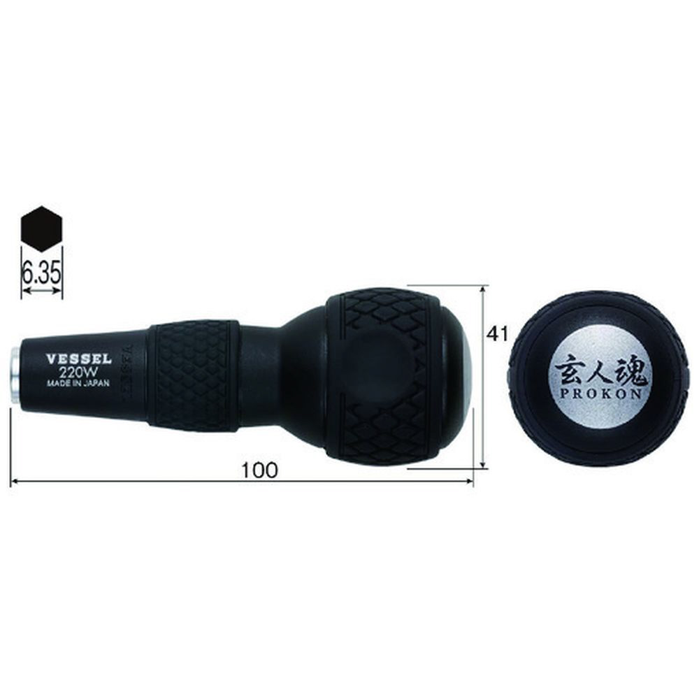 電動ドライバー用ビット(対辺6.35mm)を差し込むと使い慣れたボールグリップドライバーとしてお使いいただけます。