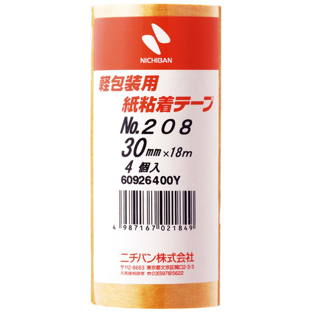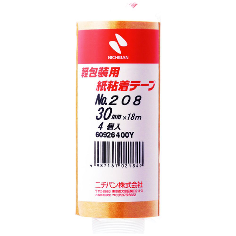 紙粘着テープ 4巻入(幅30mm/長さ18m) ブラウン 208H30