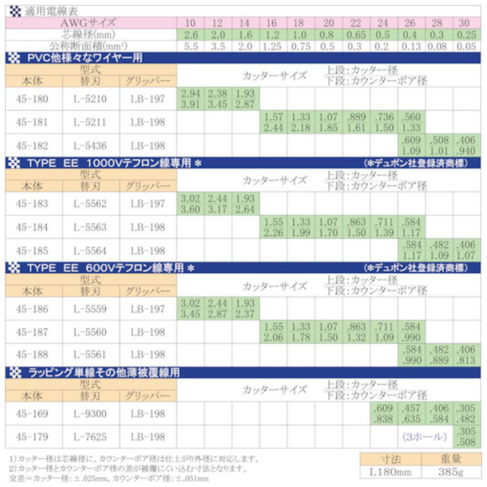 ・テフロン線、ETFE電線、航空宇宙用電線、PVC電線、ラッピング単線、その他薄被覆線に。