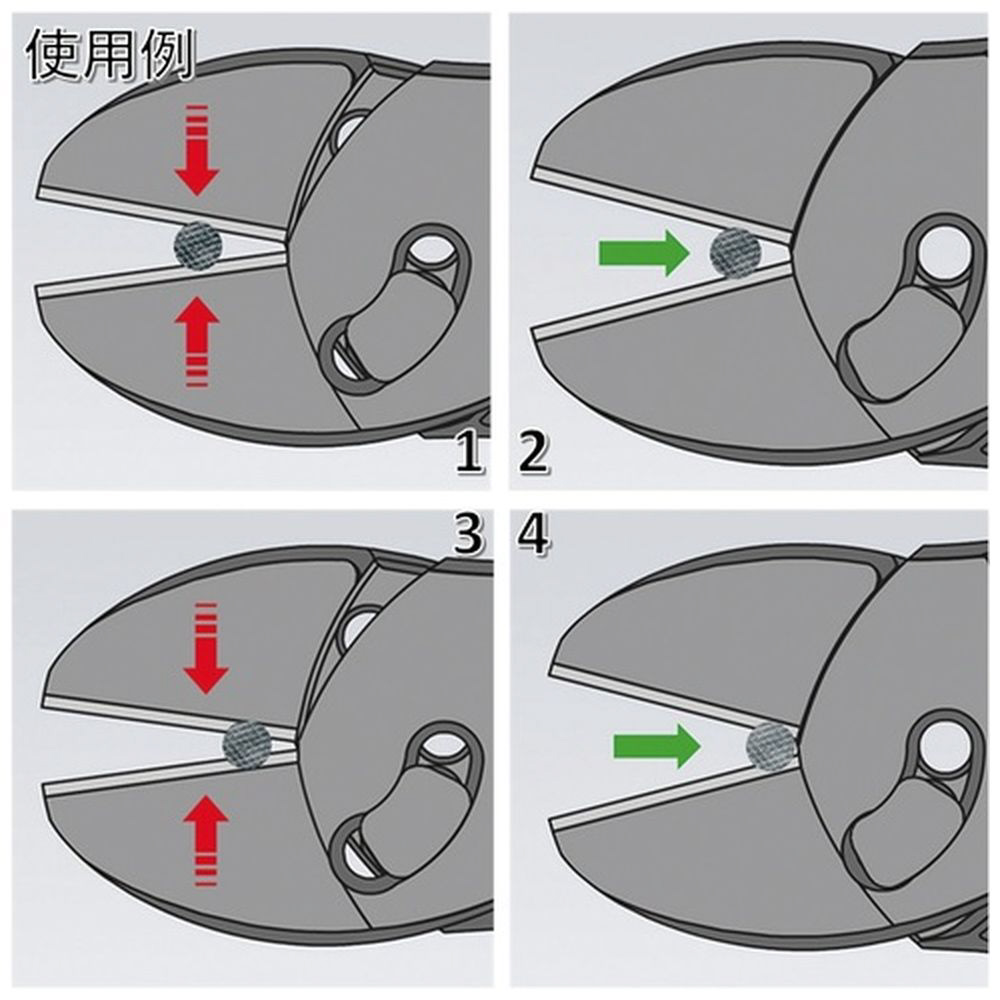 ■切断するワイヤーをできるだけ中心部に挟み、2〜3回切り込みを入れると4mm以上のものでも切断することが可能です。