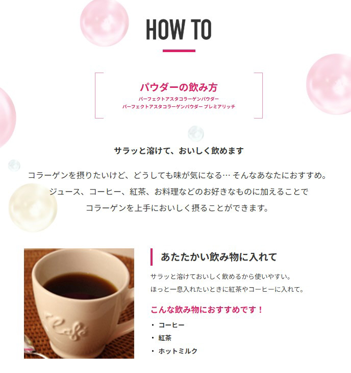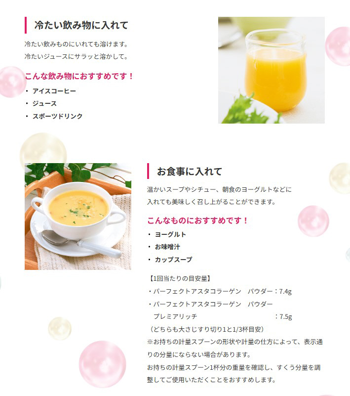 「パーフェクトアスタコラーゲン パウダー 60日分 447g」は、溶けやすく飲みやすい、12種類の成分配合のコラーゲンパウダーです。1回分あたり、低分子コラーゲン5300mg、ヒアルロン酸30mg、食物繊維1000mg、ビタミンC100mgに加え、美体質乳酸菌(R)※を配合しています。毎日の美容・健康維持にお役立てください。