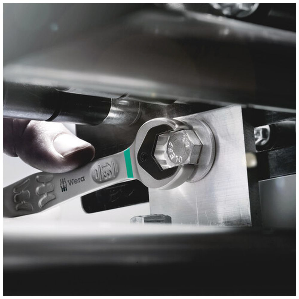 ■スパナでボルトをはさんだまま横向きで狭い箇所に挿入したり、上から力を入れて押さえながら、強いトルクでボルトを回すことができます。
