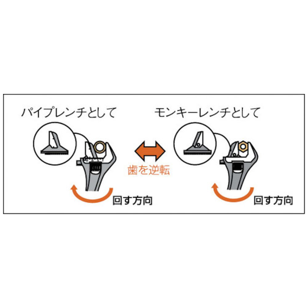 ジョーを差し替えることでパイプレンチとして使用できます。