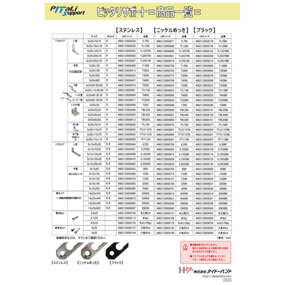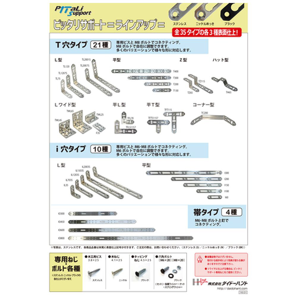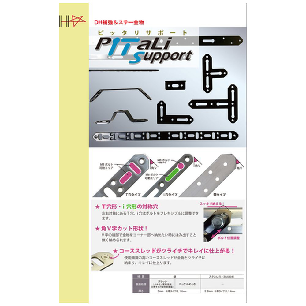 仕様 ■梱包数(個):1 ■板厚(mm):3 ■幅W(mm):25 ■長さL(mm):115 ■長さL1(mm):115 ■ビス:ピッタリサポート専用 ツライチ仕上げ。 ■ボルト:ピッタリサポートをボルトでしっかり留め付ける。 ■【材質/仕上げ】 スチール(SPHC) ■原産国:中国 ■質量:84G
