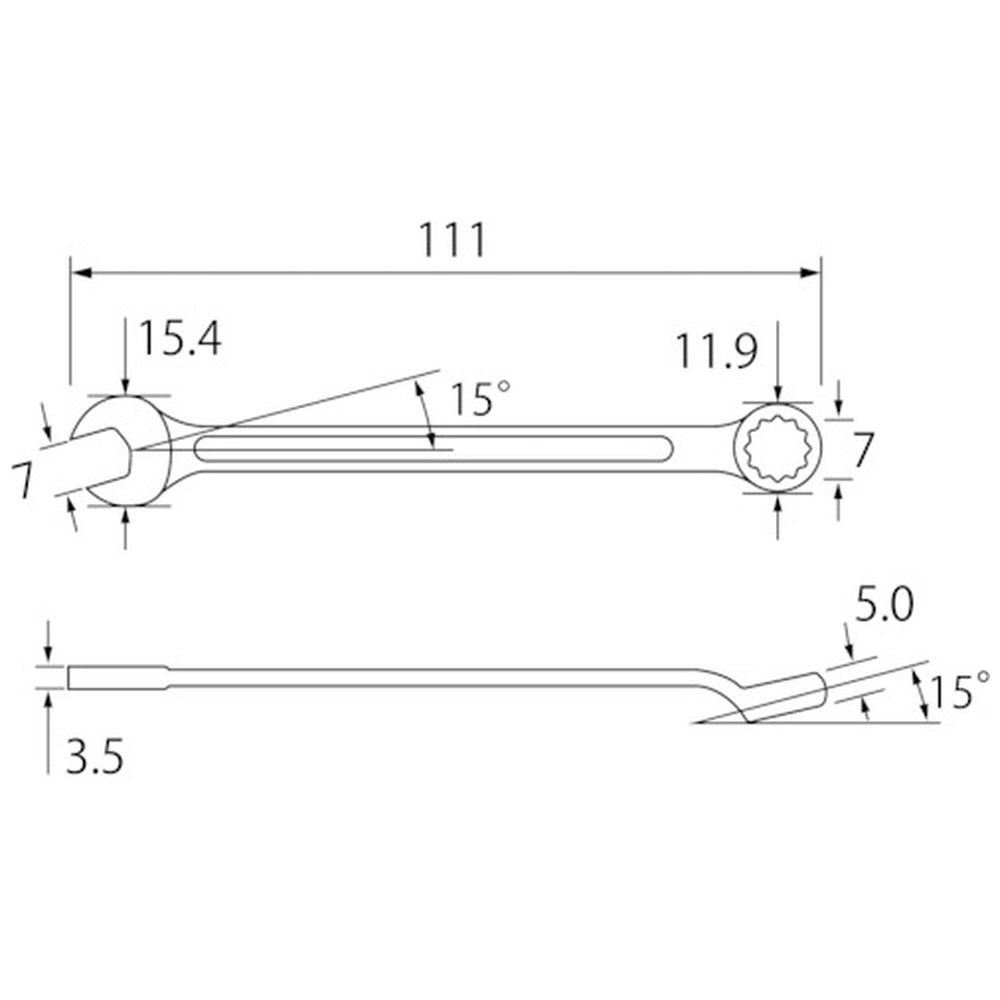 仕様 ■二面幅寸法(mm):7 ■全長(mm):111 ■梨地仕上げ ■薄型ロングタイプ ■幅:スパナ部15.4/メガネ部11.9(mm) ■厚み:スパナ部3.5/めがね部5.0(mm) ■原産国:日本 ■質量:20G