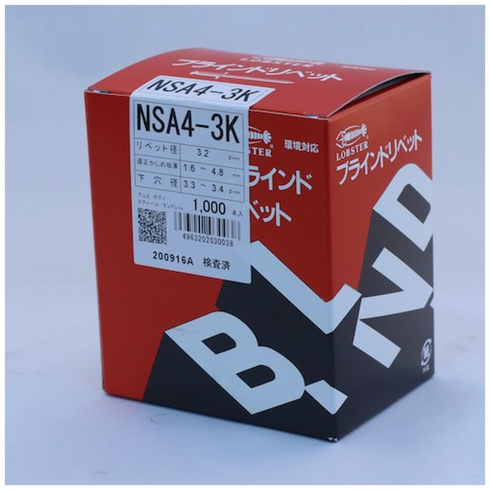 エビ ブラインドリベット皿頭(1000本入) アルミ/スティール 4−3 NSA43K