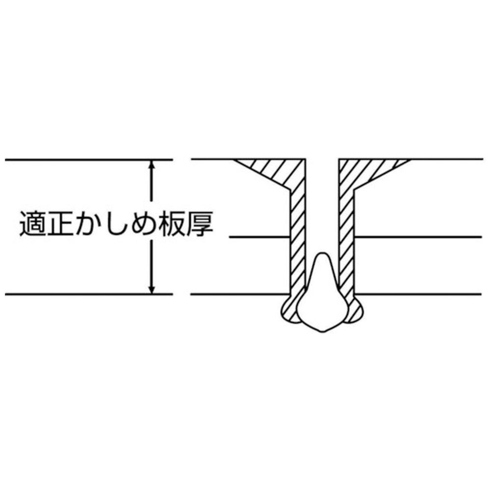 仕様 ■かしめ板厚(mm):1.6〜4.8 ■リベット長(mm):8.2 ■フランジ径(mm):6.4 ■リベット径(mm):3.2 ■下穴径(mm):3.3〜3.4 ■せん断荷重(N):970 ■引張荷重(N):1360 ■【材質/仕上げ】 リベット本体(フランジ):アルミ(A5154) マンドレル(シャフト):スチール(炭素鋼) ■原産国:日本 ■質量:1.05KG