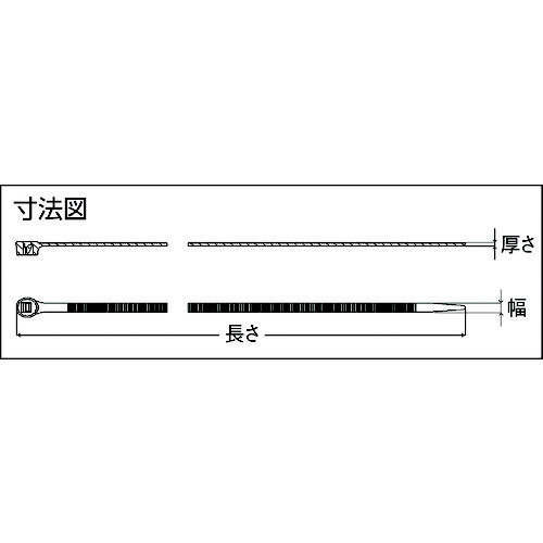 仕様 ■色:黒 ■幅(mm):3.5 ■長さ(mm):300 ■厚み(mm):1.3 ■最大結束径(mm):85 ■引張強度(N):280 ■最小結束径(mm):4 ■屋内用 ■使用温度範囲:-25〜60℃ ■【材質/仕上げ】 ナイロン66 ■注意・屋内で使用してください。・ナイロン製品は乾燥し、含水量が低下すると折れやすくなりますので、開封後はお早めにご使用ください。・開封後、保管する場合は袋を密閉してください。・厳寒期はナイロン製品が固まりやすくなりますので、室温に戻してからご使用ください。 ■原産国:イタリア ■質量:142G