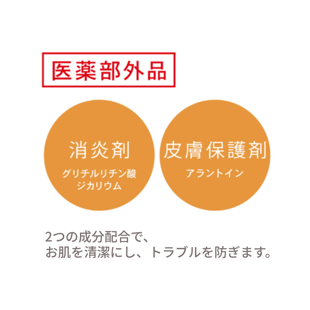 消炎成分・皮膚保護成分配合。使用後のお肌を清潔に保ち肌荒れを防ぎます。