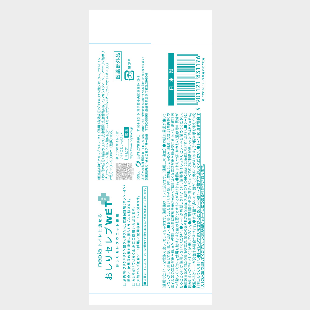 ネピア(nepia)おしりセレブ WET 薬用 おでかけ用 無香料 12枚入り トイレに流せる おしりふき [ウェットティッシュ] ネピアおしりセレブ