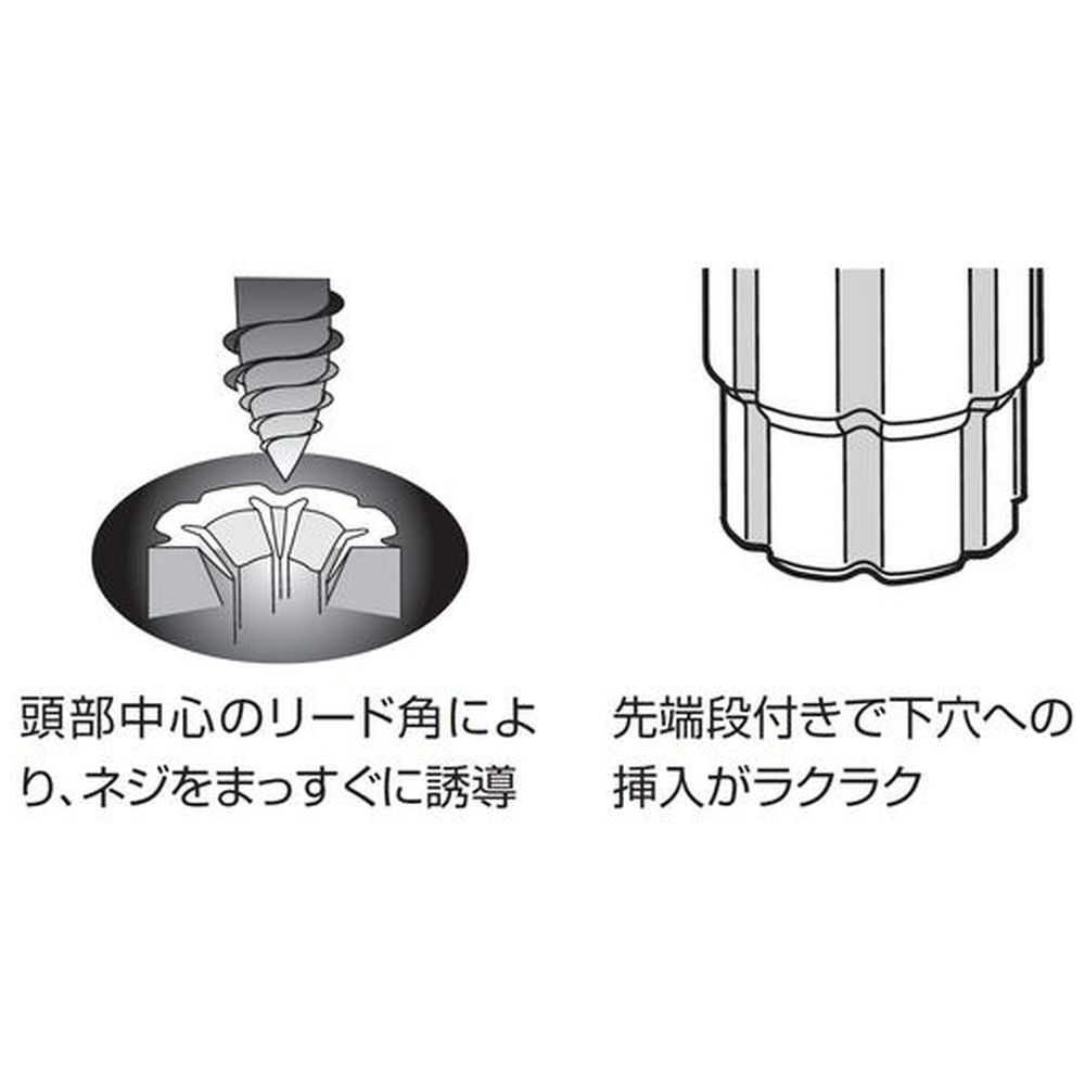 ・頭部中心のリード角により、ねじをまっすぐに誘導します。