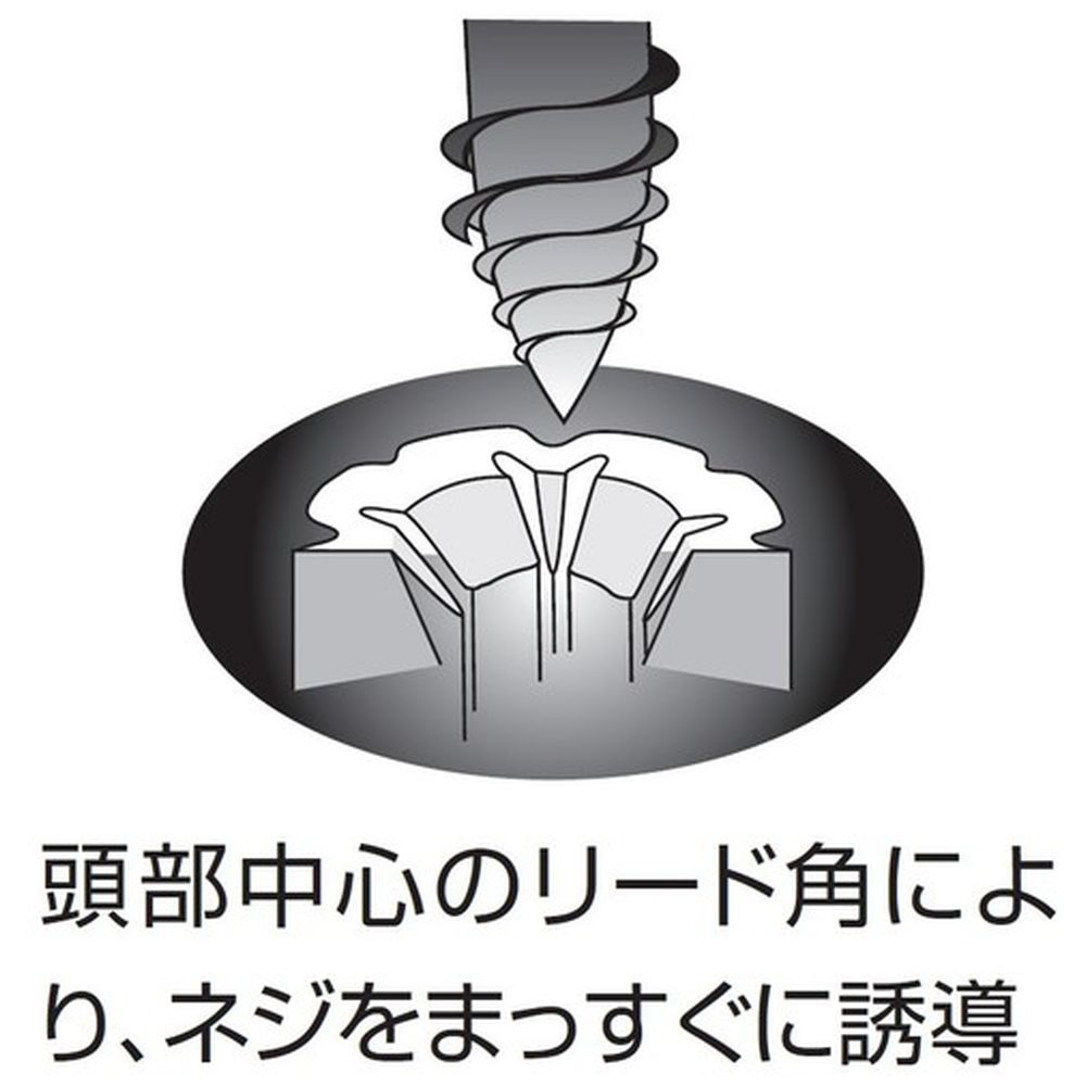 ■頭部中心のリード角により、ねじをまっすぐに誘導します。