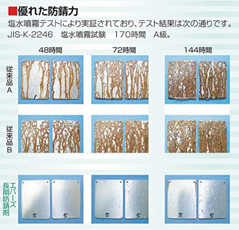 特に自転車金属部の防錆能力に秀でた比類なき超強力防錆剤です。潤滑性能もありますので自転車可動部にも最適で、自転車の動きの悪い部分の動きを滑らかにします。更に浸透性もありますので、サビついたボルトやナットを暫くするとゆるめる事ができます。うすいサビや油汚れを吹くだけで簡単におとせます。自転車以外にも自動車やオートバイ、自販機等あらゆる機械、器具の強力防錆に最適です。