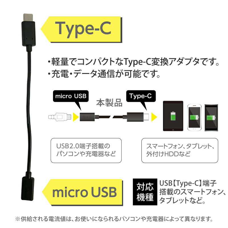 USB変換アダプタ [USB-C オス→メス micro USB /充電 /転送 /USB2.0] ブラック ADC-SP10K