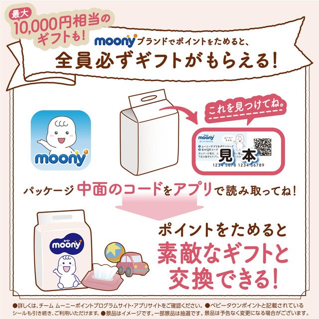 ●みらいのお肌のために 低刺激であんしん※ママ・パパを応援するムーニーのスローガンです