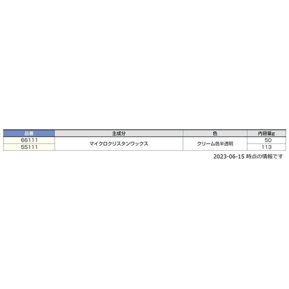 仕様 ■木製品・陶磁器の転倒防止。 ■容量(g):113 ■色:クリーム色(半透明) ■【セット内容/付属品】・マイクロクリスタンワックス ■注意・ヘラ ■原産国:US ■質量:アメリカ113