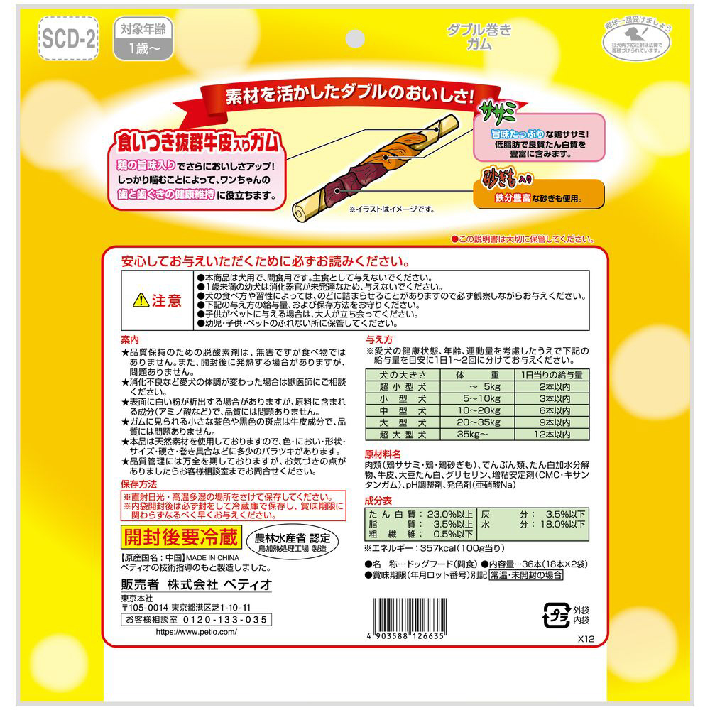 ササミ+モグハードダブル巻きガム 36本入