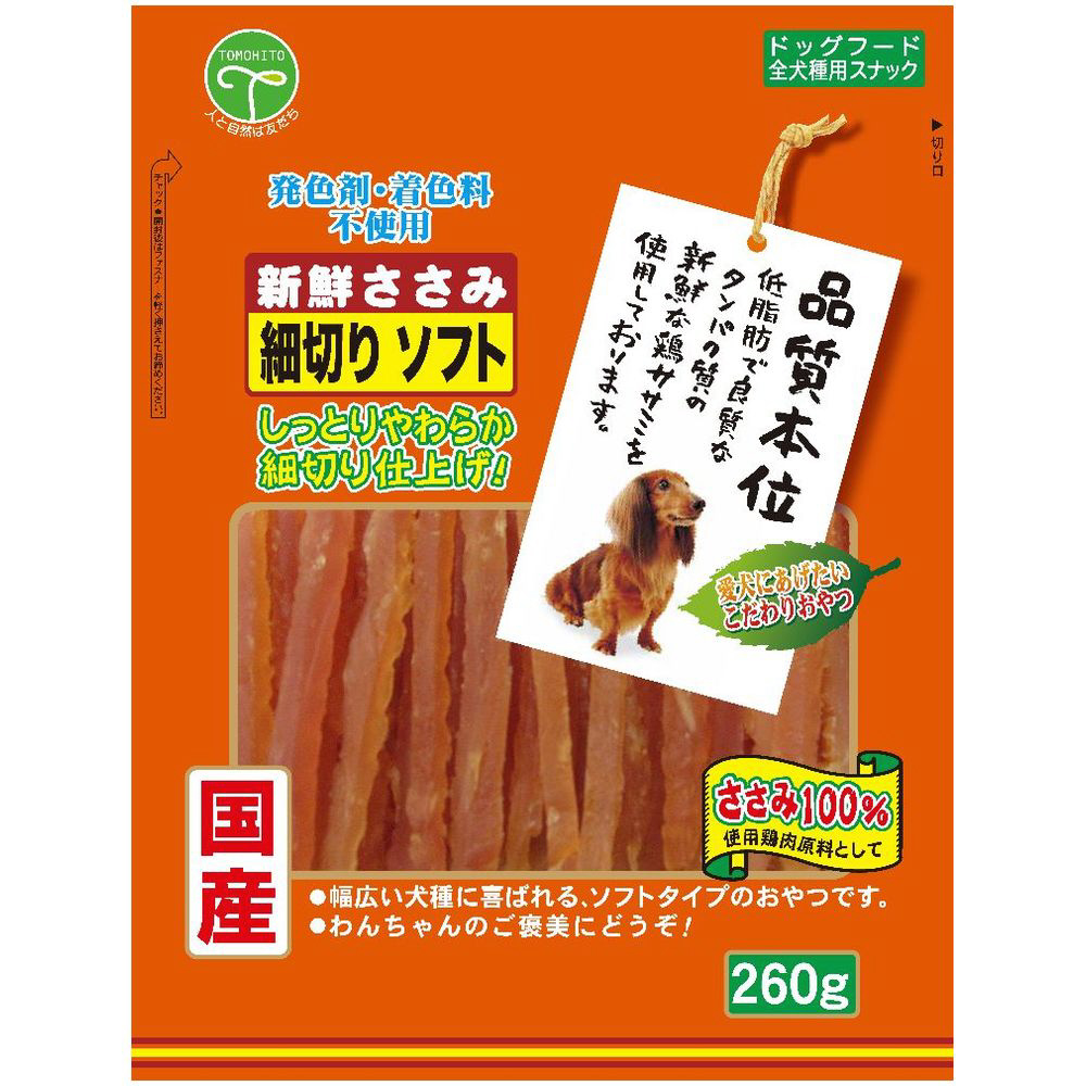 新鮮で良質なささみを使用した低脂肪スナックで、犬種を選ばないソフト仕上げにしており少量ずつ与えやすく、細切タイプに加工しております。