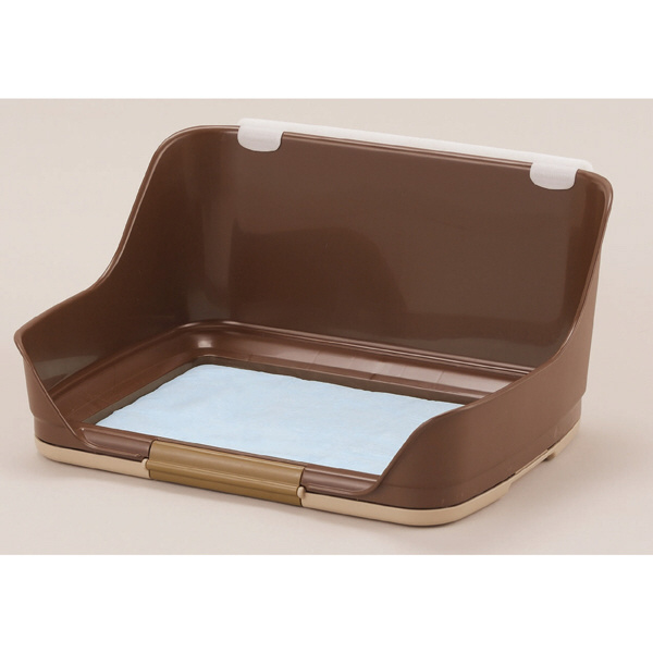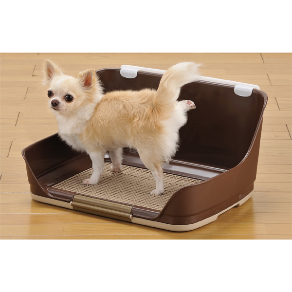 背面部の壁に高さがあるので足を上げるワンちゃんにぴったり!背面部の壁にシーツをセットできるシーツ止めクリップ付き!メッシュカバーでいたずら防止ができシーツへのいたずらが無くなればメッシュを外して使用可能、回転式でシーツの交換も楽々!レギュラーサイズ(33×45cm)のペットシーツがぴったり入る犬用トイレです。●サイズ:(Sサイズ)約W512×D405×H260mm●材質:PP樹脂、ABS樹脂