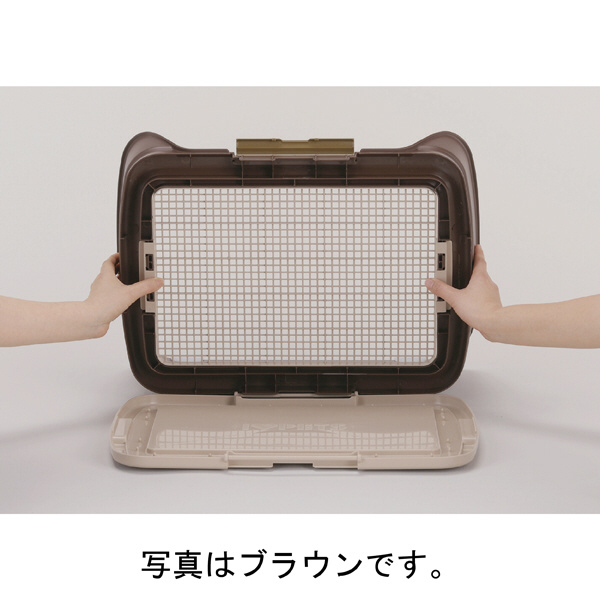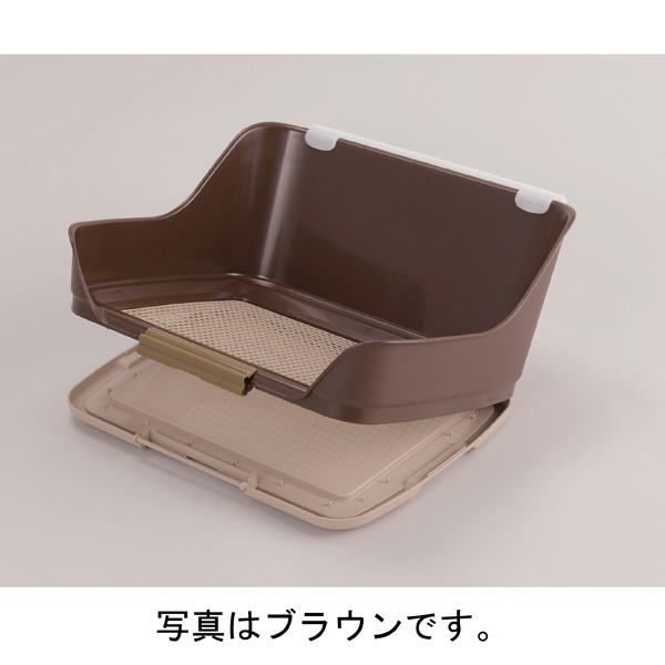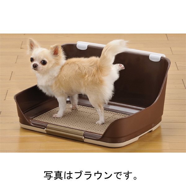 背面部の壁に高さがあるので足を上げるワンちゃんにぴったり!背面部の壁にシーツをセットできるシーツ止めクリップ付き!メッシュカバーでいたずら防止ができシーツへのいたずらが無くなればメッシュを外して使用可能、回転式でシーツの交換も楽々!レギュラーサイズ(33×45cm)のペットシーツがぴったり入る犬用トイレです。●サイズ:(Sサイズ)約W512×D405×H260mm●材質:PP樹脂、ABS樹脂